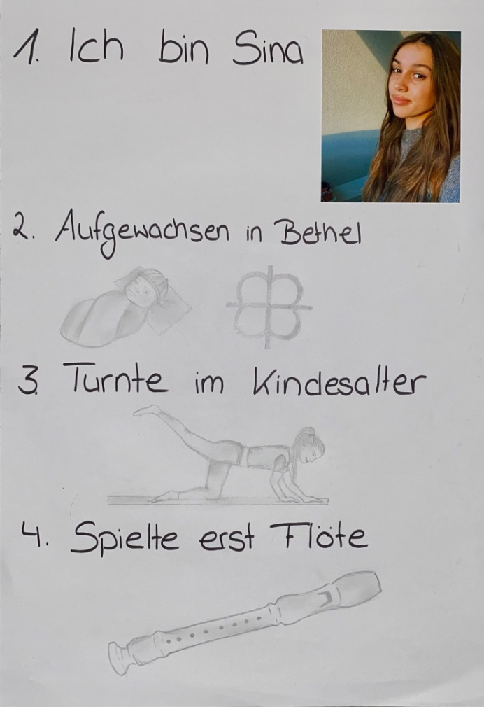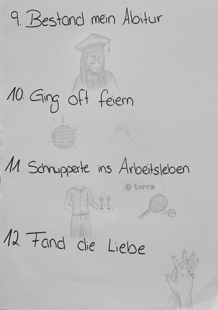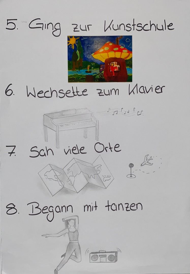 THEMA: Long Story Short: Schreibe Deine Lebensgeschichte in 12 Drei-Wort-Sätzen. Übersetze die Geschichte in 12 ebenso prägnante Zeichnungen oder fotografische Motive. Arrangiere Bilder und Texte zusammen auf einem Poster.